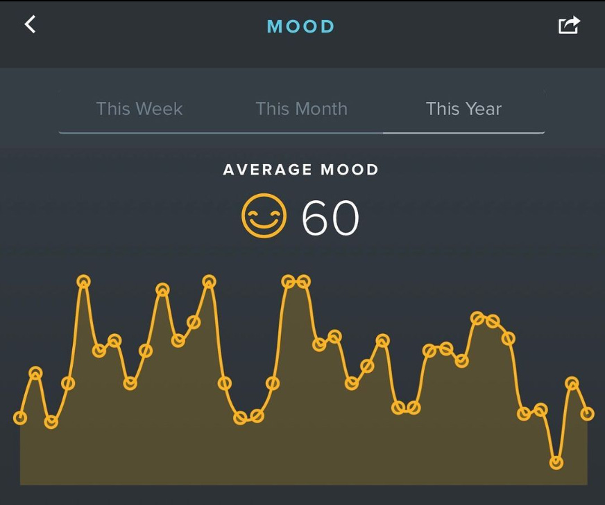 “beh made this analogy a while back on how emotions are like stocks, and how even if you dip a lot, its more important that your average is increasing. this is my mood log since august - the lows are pretty severe but i was surprised that my average is not as low as i thought, and it made me feel better to see it in a more tangible way. i have been questioning myself a lot lately, because it feels like a year of progress just to be in the same situations i was in last year. i think we are trained to do the most to reach new highs on a daily basis, but maybe the focus should be to increase your average first.”
